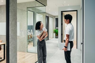 新オフィス”Mita S-Garden”のエントランス。このリモート時代にあえてオフィスを作り込み。多種多様な価値観があつまりディスカッションを通じて世に最大の価値を提供しております。