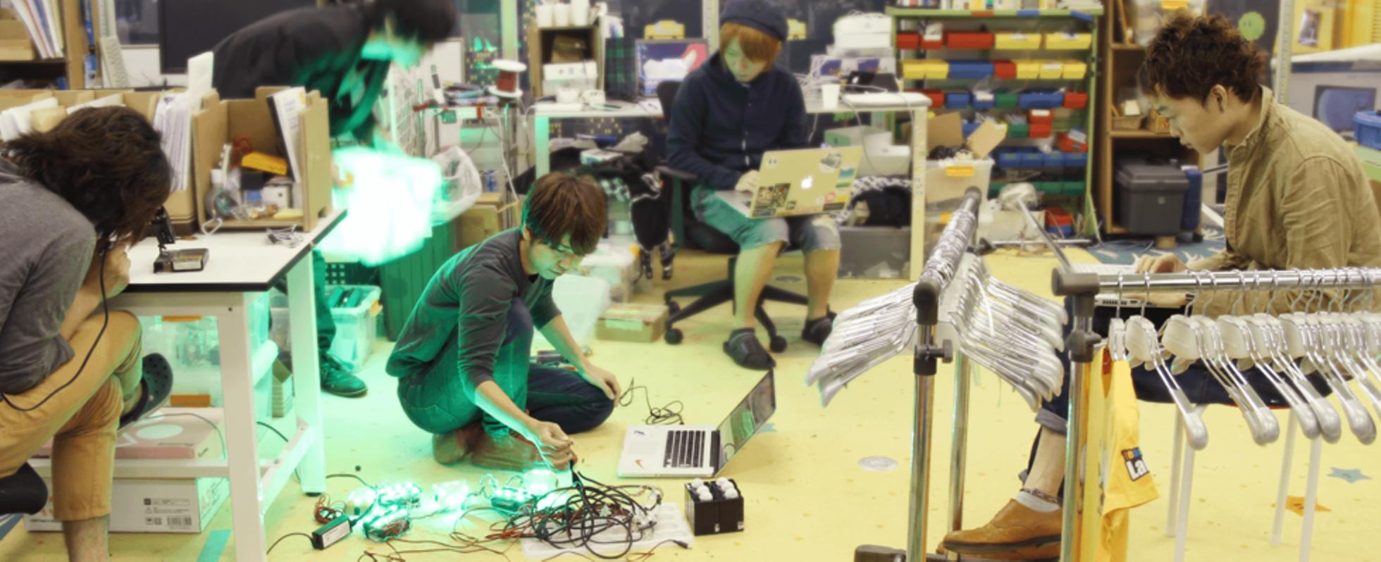 teamLabBall(チームラボボール)」https://www.teamlab.art/jp/w/teamlab-ball-2/ 周囲の人々の行為によって色や光や音を変えることができる、インタラクティブインターフェイスです。球体に手を触れると、光の色が変わったり、音色が鳴り響いたりします。各球体は、無線によるP2P(Peer to Peer)で同期しているので、全ての球体を一斉に同じ色に変えたり、空間内の照明の色を変えることもできます。