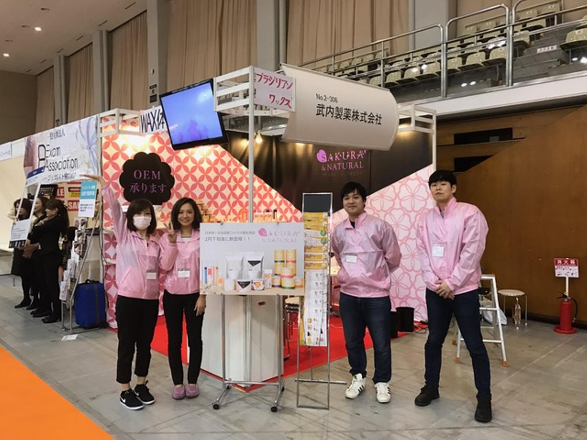 武内製薬のオフィスに展示されている自社製品の数々。