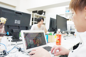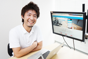 ウケトルには腕に覚えのある技術者が多数在籍しています。写真はその一人である井上。モバイルアプリの開発、運用全般に加えて、サーバー側の開発もできるマルチな人材です。