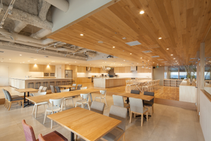 社員が団らんやミーティングに使えるアイランドキッチンとラウンジ。