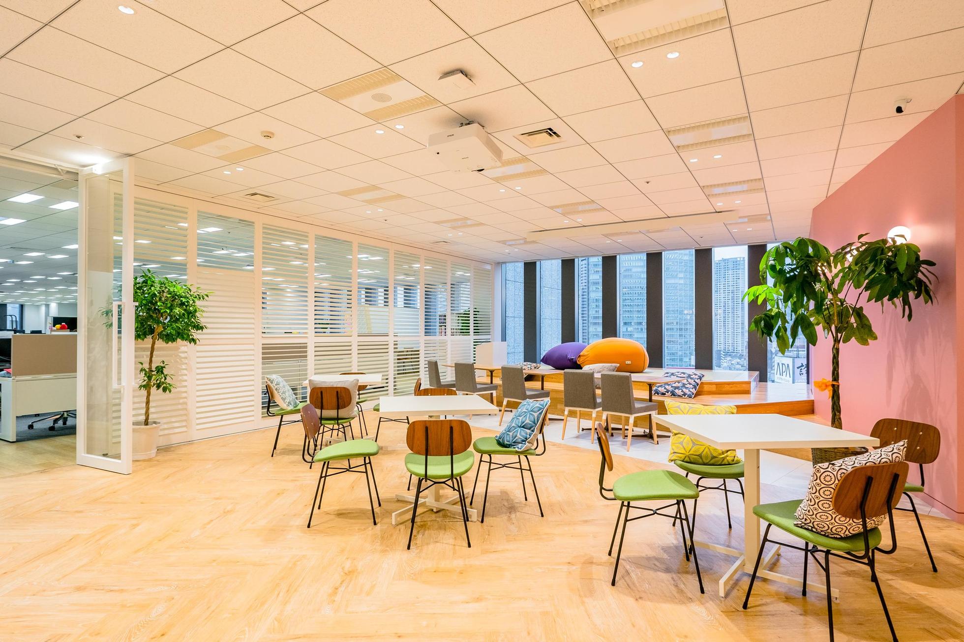 オフィス内には共有スペースや集中スペースを完備。自分に合うスタイルで仕事に集中して欲しいと考えています。