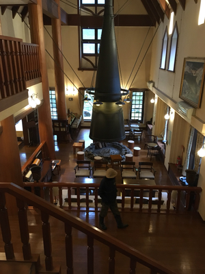 「森の国ホテル」にある存在感抜群の暖炉。ここで語らうお客様の様子をイメージしながら、プロジェクトは走っています。新型コロナウイルスの状況次第ですが、概ね1年後のリブランディングオープンを目指しています。先行オープンした「水際のロッジ」とはまた違ったコンセプトで生まれ変わる予定です。