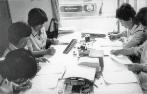 52年前に開始した診療報酬請求業務は当時電卓も普及しておらず、そろばんでレセプトを作成。試行錯誤の連続で辛い経験も多かった。診療所のリンゴ箱の上やレントゲン台で作業することもあった。