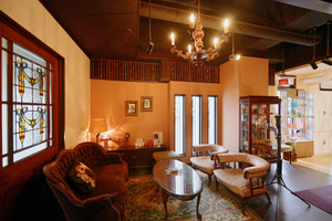 ステンドグラスがはめ込まれた大きな扉を開けばそこは、別世界。 日本の伝統的な美と英国製のアンティーク家具が融合した、こだわりの店内です。 岡崎と安城の2拠点にお店を展開しています。