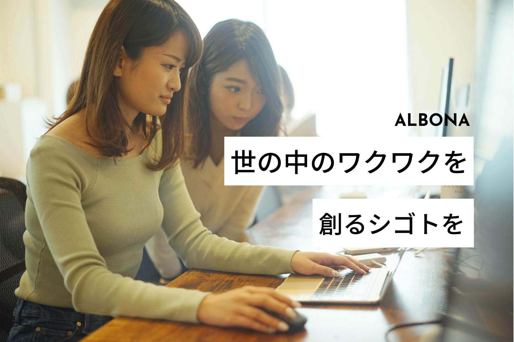 ALBONAはWEBマーケティングを駆使して 「世の中に"+1%"の新たな幸せを創る」 というMISSIONを掲げて、マーケティング事業をしている会社です。 - 主な業務内容は? ■ 広告運用業務 さまざまな業界のWEB広告運用を担当。広告効果向上のための運用・分析・施策立案・改善実行・効果検証などを行ないます。 ◇ 市場調査 他社の広告やプロモーションの流行をチェック。トレンドワードなどの情報収集を行います。 ◇ クリエイティブや記事の作成 ライターやデザイナーと連携し、ターゲットにぶっ刺さるコピーや記事・動画や画像を作成します。 ◇ 分析・効果改善 運用開始後、広告効果を確認、分析と改善を行なっていきます。 ■ SNSメディア運営業務 Instagramを始め、TwitterやTikTok、You Tubeなど様々なSNS媒体の運用を担当します。バズを生み出し、フォロワー総数100万人以上のアカウントを裏方で運用します。 ◇ 各種媒体のアルゴリズムの分析 どの媒体がどういうロジックで投稿がバズるのか?を分析します ◇ 流行のチェック〜制作、運用 世の中の流行の美容やファッション、漫画や恋愛ネタ、転職や時事ネタなど様々なジャンルの情報収集をもとにコンテンツを企画から制作、運用まで担当します。 ■ インフルエンサーPR企画業務 InstagramやTwitter、TikTok、You Tubeなど提携しているインフルエンサーは1,000名以上!クライアントのニーズに合わせて適切なインフルエンサーを選定し、最適な企画を立案してバズを生み出し流行りを作ります。 ◇ アサインおよびスケジュール・タスク管理 クライアントのニーズに合わせた適切な媒体の選定から実際のインフルエンサーのアサイン、タスク管理を実行します。 ◇ PR企画の立案から実行から分析・効果改善 インフルエンサーに合わせた実際のPRの企画立案から実行まで実施。 運用開始後、広告の効果を適宜確認し、分析と改善を行なっていきます。 これからマーケティング業務の4軸にプラスして 自社でもどんどん事業を拡大しています。 ④新規事業開発 ■ C2C、B2Cプラットフォーム運営事業 ■ B2BのSaaS事業、ツール開発 ■ 生活消費財、美容領域のD2C事業(美容液シャンプー、ビタミンサプリを販売) ■ AIを活用したコンテンツ生成事業 マーケティング視点で幅広く自社事業を展開しています。 自社開発でWEBサービスや商品開発、アプリ開発など様々な事業をどんどん新しく作ります。 - 具体的にどんなコトをしているのか? 集客や販促に困っているクライアント様に対して 広告やSNS、インフルエンサーを活用した集客や販促をサポートしたり SNSの運用であったり、LPの改修を提案することでクライアント様のニーズを解決しています。 D2C企業やレガシーサービス、店舗運営の企業に対して多様なパターンでサポートしています。 取り組みのあるクライアント業界も多岐に渡ります。金融、不動産、美容、医療、ファッション、生活消費財、人材、食品など定期通販や来店申し込みなど幅広く対応できます。また、広告運用だけでなく、インフルエンサーや各種SNS、SEOなど幅広いマーケティング支援を一貫して担えるのが弊社の強みです。 WEBマーケティングの「正解」は常に変化していきます。ラーニングとアンラーニングを繰り返し、変化し続けなければいけません。変化を恐れていては市場に取り残されていくため、新しい挑戦に毎日ワクワクして働きつづけます。 利他的なメンバーが非常に多いため支え合い、チームワークが高くわからないことはいつでも相談できます。また、業務範囲や裁量が大きいため、意欲次第でぐんぐんスキルの幅を広げていけます。