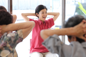 要支援認定者、要介護認定者の数多くの皆様の「リハビリを受けたい」とのご要望にお応えするため、リハビリデイのパイオニア、在宅療養支援楓の風グループが開発した生活期リハビリテーションを提供する短時間制リハビリデイサービスです。