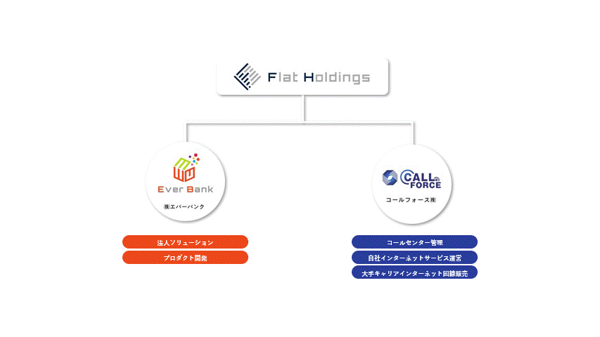 当社は、2020年7月にホールディングス化いたしました。自社サービスを開発している株式会社エバーバンクと開発した自社サービス提供しているCALL FORCE株式会社がございます。