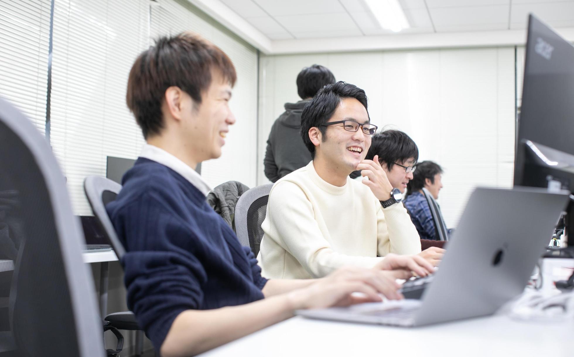 チームワークを大切にしており、エンジニア、デザイナー、臨床開発...といった各分野のプロフェッショナルが連動する、一体感のあるチームになっています