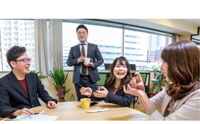 社内の様子。フリーアドレスで社長室などはありません。