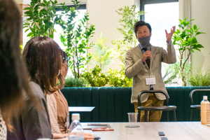 第1回イベントの様子。代表の白石が、就活を目前に控えた学生へ向けてセミナー「残酷な時代を豊かに生き抜くための20代の過ごし方」を開催。軽いワークをはさみながら行った本セミナーでは、参加した学生は真剣な面持ちで聴いていました