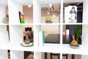 作業スペースとリラックススペースを仕切っている棚です。おすすめの本、パズル、観葉植物などが置いてあります。休憩時間にメンバーとパズルをしてリフレッシュしています!