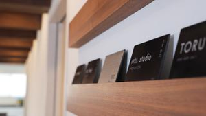 オフィスでは、個人のデスクが決められていません。その日どこで誰が作業しているかが一目でわかるようにと、ネームプレートを用意しています。