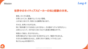 世界中のネイティブスピーカーの知と経験の共有をVisionに、日々業務を推進しています。