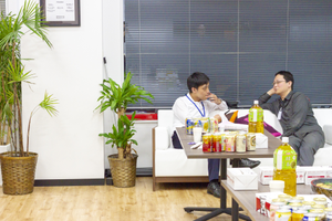 月に一度のカジュアルなオフィスパーティの場でも、ついつい話し込んでしまうようです。