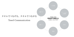 ハートウエルは昨年2020年、創業90周年を機に「Towel Communication:タオルでつなげる、タオルでつながる」をコーポレートビジョンとして設定しました。タオルづくりを究めてきたハートウエルですが、ものづくりを重んじる伝統に加え、タオルやその関係者をメデイアと捉えてコミュニケーションを活性化させる取り組みを始めようとしています。 ハートウエルが創業したのは1930年ですが、「良いものをつくっていればOK」という時代はすでに終わりを迎えています。そんな世情だからこそ、生活・暮らしを見つめたタオルづくりを希求してきたハートウエルは、ものづくりの先にあるユーザ・ファンとのコミュニケーションまで大事にしていきたいと考えています。 そもそも、社名のハートウエル(Hartwell)は、「Heart」 と 「Well」を組み合わせた造語です。品質が良いタオルをつくることは当然として、WEB・リアルでのコミュニケーション含め、お客様を含めた関係者の心身の自由さ「Wellbeing」な状態に貢献していくことをハートウエルは追求していきます。