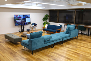 yogiboのあるコミュニケーションスペースでは、メンバー同士リラックスしながらアイデアを出し合います。