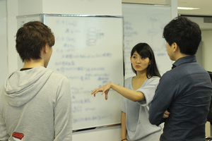 何かあったら近くのホワイトボードで突然壁打ちが始まることも。このスピード感が強みの一つです!