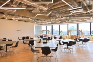 広々としたフリースペースでは自由に休憩したり業務をすることができます。記者会見や、会社イベント等が行われています。富士山や東京タワーも望めます。