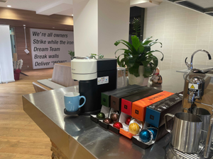 綺麗なオフィスで休憩時間はコーヒーを飲んでリラックスできます
