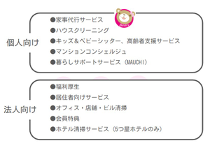 家事代行やハウスクリーニングのみならず、買い物代行・洗濯代行・家電レンタル・カーシェアなどのサービスも展開中。新規事業の開発にも力を入れています。
