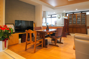 「大切な家族をいつも近くに感じる住まい」をコンセプトに行った事例。ご家族が帰宅された際には、ご自宅で待っているお母様の気配を玄関から感じとれるような、安心できる間取りをご提案。また、ご主人の書斎の机をリメイクし棚板やカウンターなどに活用して大切な思い出を残しました。