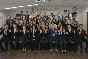 社員の集合写真。田島興産では20代から70代まで幅広い世代の社員が活躍しています。
