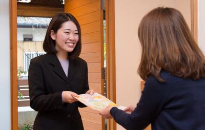 リフォームの営業担当の様子。実際にお客様のお宅に訪問し、理想の住まいづくりのお手伝いをするために、現場の様子もしっかり記録します。お客様・職人さんと協力し、一丸となってお客様の理想のくらしをカタチにしています。