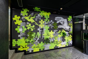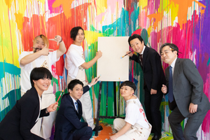 大塚にある会社のエントランス壁画。企業理念をアートで楽しく表現。社員の皆様とも会話が弾みます。