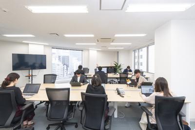 オフィスは広々としたフロアで仕事に集中できる環境です。64インチの大型モニターも完備されており、会議はもちろん、好きな映画や音楽を流しながら業務に取り組んでいます。