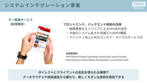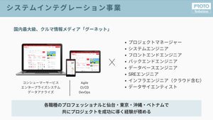 2005年04月 株式会社アイソリューションズ入社 Webエンジニアとして、プログラマー、システムエンジニアを経験。社内案件に加え、様々な客先常駐を経験。 プロパーにも引けを取らない姿勢から、サブリーダーとしてチーム統括も任されるに至ったが、株式会社プロトソリューションへ商号変更をきっかけに社内グループ案件にシフト。 現在は、AIテクノロジー推進室仙台において、システム開発(Web系)のPMを担当。 これまでの経験と、ポジティブすぎるマインドをベースに、未踏領域への挑戦を続けている。