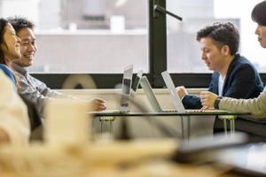 打ち合わせの風景。自由に使えるオープンスペースも多数あります。