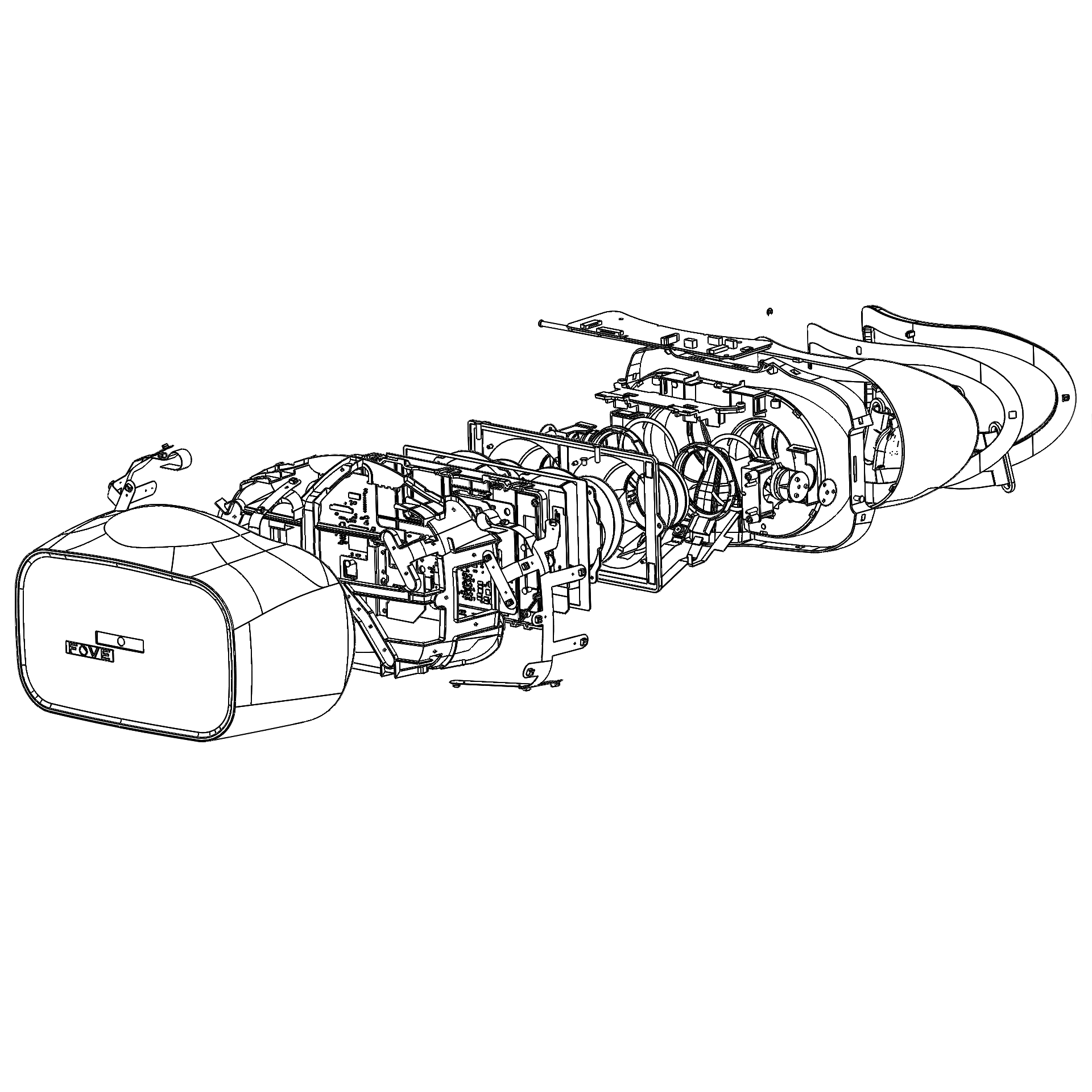 『FOVE 0』ヘッドセットの展開イメージ。視線追跡アルゴリズムや光学設計等で数多くの特許を取得しています。