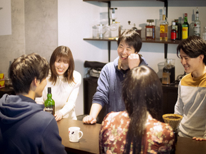 お酒・コーヒーマシンなどが自由に飲めるバーカウンター