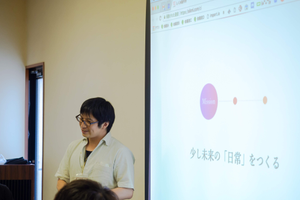 オフ会にて事業計画を発表する代表 車