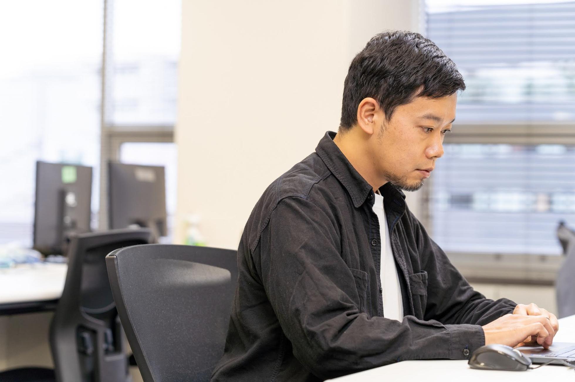 代表取締役CEO 山岸聖幸 代表自ら企画から配信、マーケティングにまで携わっています。すべての工程のベストな状態を社長自ら把握し、メンバーとゲーム開発を行っています。