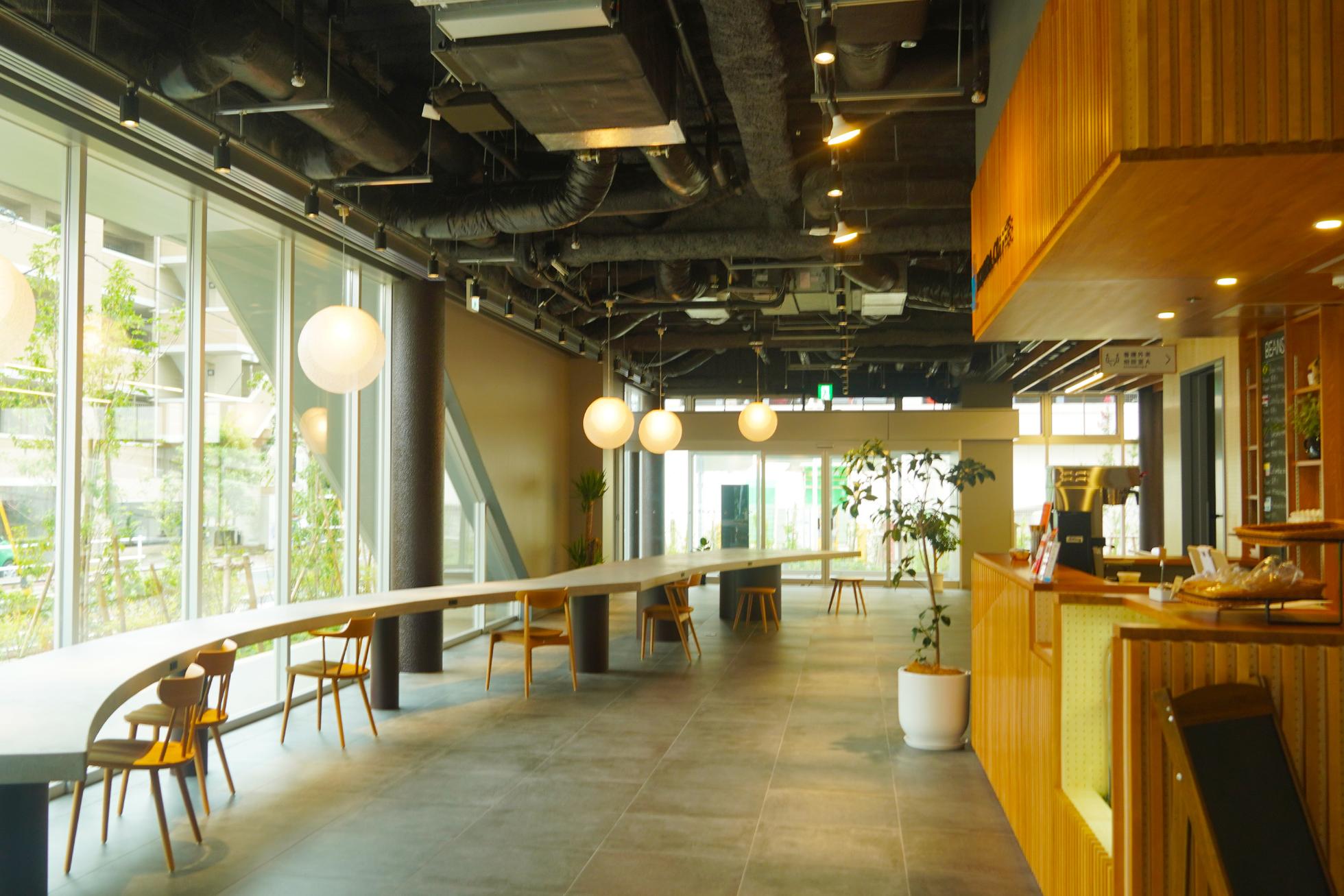 おうちにかえろう。病院の1階。外の名世界と病院内の世界とをつなぐようなデザインは、「病院」という閉鎖的なイメージを払拭し、患者様と地域とをつなぎます。患者様が過ごしやすいように、スタッフが働きやすいように、院内各所に様々な工夫と、想いが詰まっています。(撮影場所:おうちにかえろう。病院1階)