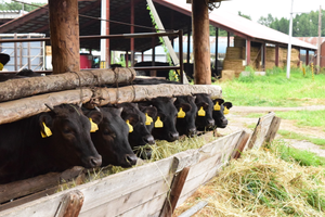 風通しの良い牛舎でマイペースにご飯を食べる牛