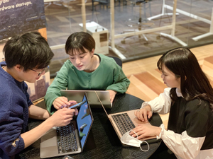 CEO藤田が全社戦略に関してインターン生にヒアリングしている様子