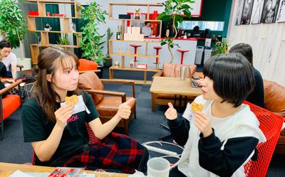 【オフィスコンセプト】オフィスは、当社のミッションである「前例のない熱狂を、しかける。」を表現するため、「WOW!」をコンセプトに設定しております。前例のない取り組みを行うには、「冷静と情熱」の両方が必要です。フロア内は、この2つを象徴する青と赤のRGBライティングで表しています。印象的なエントランスは、壁に開けられたポリゴン状の穴が、多くの障害を乗り越えて拡大してきた当社の突破力を映し出しました。