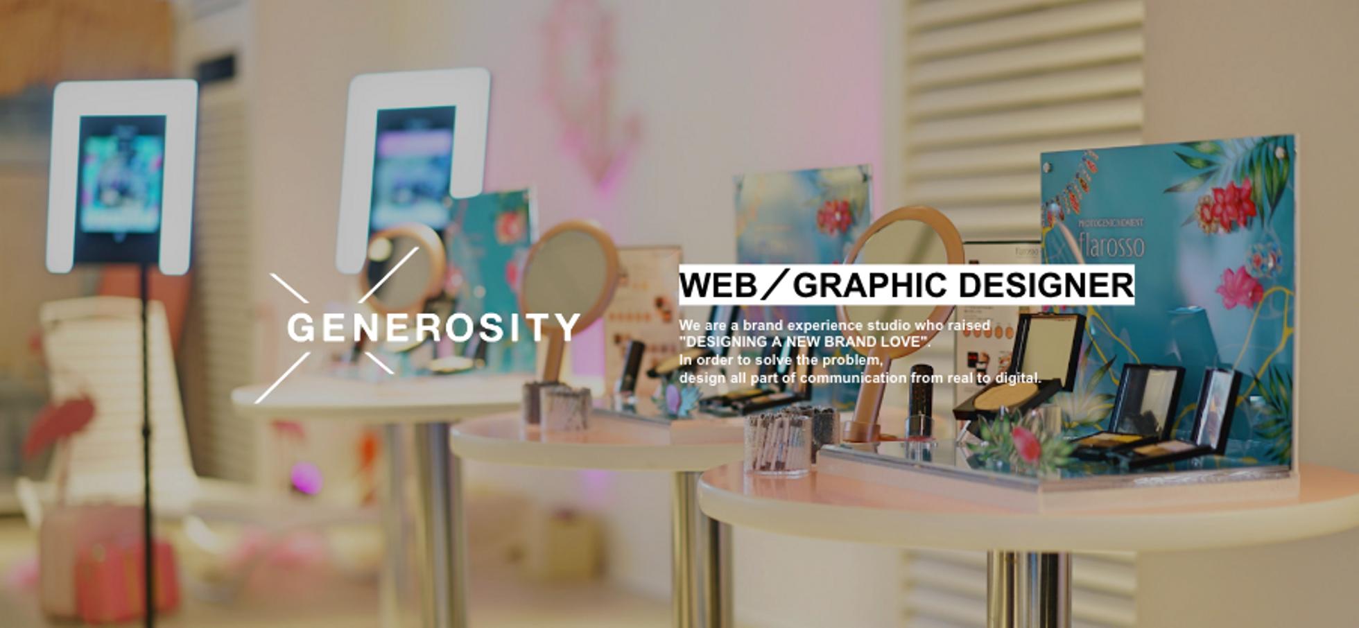 GENEROSITY Inc. クリエイティブディレクター/デザイナー 広告企画制作会社 (5年) グラフィックデザイン、webデザイン、時には自分でカメラを回し映像編集など幅広くクリエイティブ制作を行う。 テレビ局(3年) VODサービスのブランディング/クリエイティブ制作担当(アプリUIUX、Webディレクション、CM・キャンペーンなどのビジュアル制作etc...) GENEROSITY 創業期(旧社名DAWGS inc, SnSnap inc,)からクリエイティブディレクター/デザイナーとして参画。 培ってきた幅広いクリエイティブ力を武器に、グラフィック、Web、空間演出などリアルとデジタルを問わずマルチにこなす。