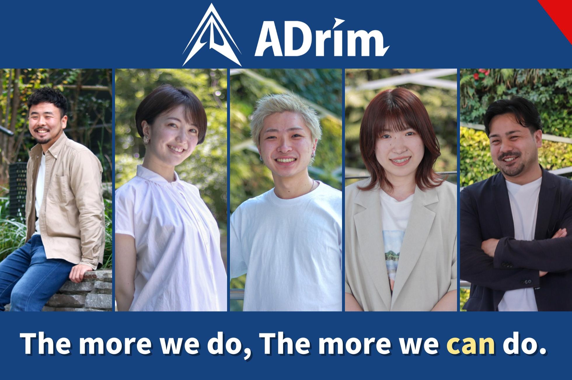 私たちアドリムは、デジタルマーケティングのコンサルティングから運用までを完全に網羅し、ワンストップで提供している企業です!設立初年度である2016年度の売上高は6,000万円だった中、2期目には2.5億、3期目は6億と倍々成長を続け、現在は7期目を迎えました! 現在「デジタルマーケティング事業」「ADソリューション事業」「プラットフォーム事業」「WEBサービス事業」の4つを展開しています。 ■デジタルマーケティング事業 リスティング広告、SNS広告(facebook、Twitter、Instagram他)、アフィリエイト広告、DSP広告など、クライアントの求めるゴールを達成するデジタルプロモーション戦略を生み出し、実行しています。ADrimにおいてデジタルマーケティング領域の施策で実行ができないものはありません。 ■ADソリューション事業 マーケティング活動においての課題解決を目的としたシステム開発(Saas)を行っています。 ■プラットフォーム事業 Youtuberとクライアント(広告主)を直接マッチングさせる次世代のプラットフォーム「YUUMAKER」の開発と運営を行っています。 ■WEBサービス事業 「絵本のサブスク」「おもちゃのサブスク」の2つのサービスを中心に教育領域に挑戦。そのほかに年に10個以上サービスのR&Dを行う。 --- 今後も当社のデジタルマーケティングノウハウを活かしクライアントのさらなる発展に貢献し、常に移り変わる世の中に価値のあるサービスを開発していく。それにはたくさんの頭脳とたくさんの情熱が必要。社内の組織強化を目指しもっともっと仲間を増やしていきたいと考えています!