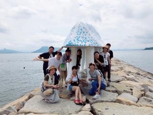 2018年の社員旅行。寝台列車で香川に行き、男木島でアートを鑑賞。翌日は現地保育園で、現役アーティストが子どもたちと触れ合う「アートな保育」に参加しました。