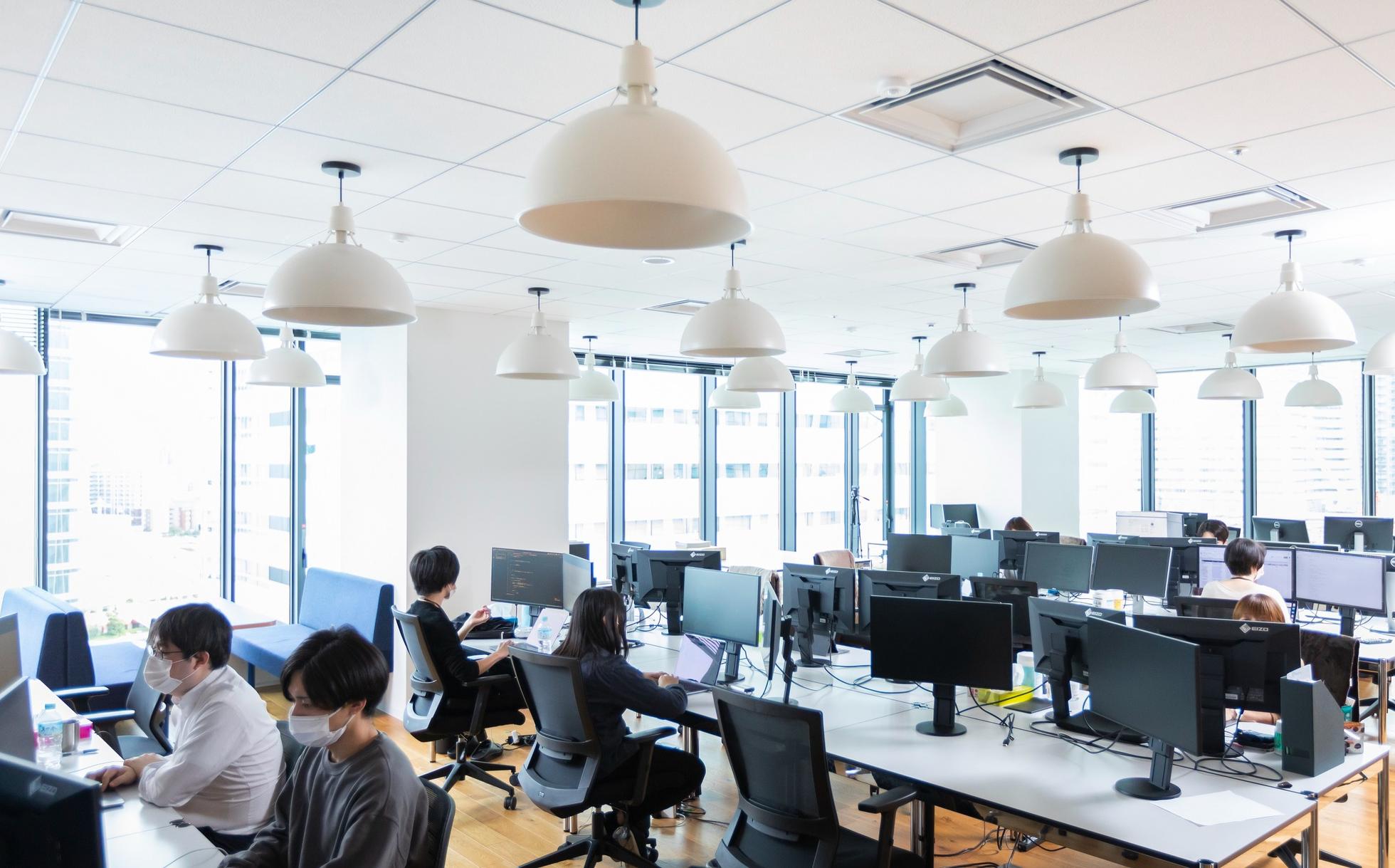 窓からは富士山が見える。明るく環境の良いオフィス空間。
