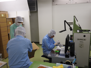 冷泉工場での1シーンです。3人体制で指導を受けながらお仕事をしていきます。