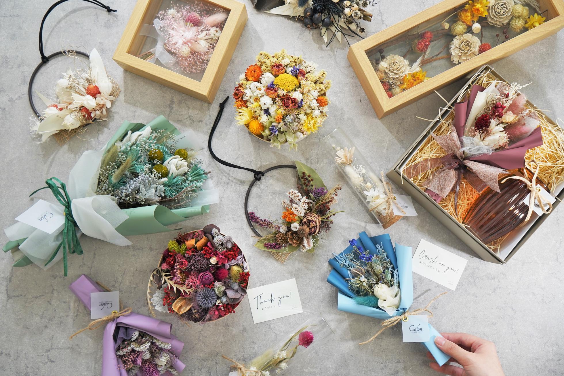 Calonのフレアラッピングを施した、ドライフラワーの花束は幅広い世代に支持されております。