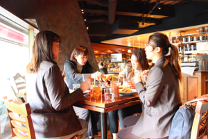 こちらは首都圏メンバーのランチ女子会の様子。年齢が近い社員が多く在籍しているので風通しが良く、みんな仲良し。プライベートの話でも仕事の話でもよく盛り上がります。