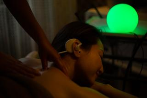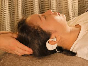 リラクゼーションサロンでのデバイス装着の様子