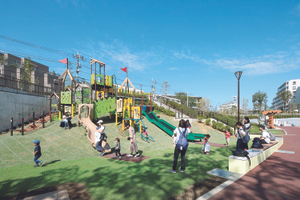 「インクルーシブ・プレイグラウンド」それは、あらゆる子どもの遊びたい!を叶える遊び場。遊びの楽しさには性別、年齢、言語や能力、どんな違いもらくらくと飛び越える力があると考え新たな公園の提案をしています。
