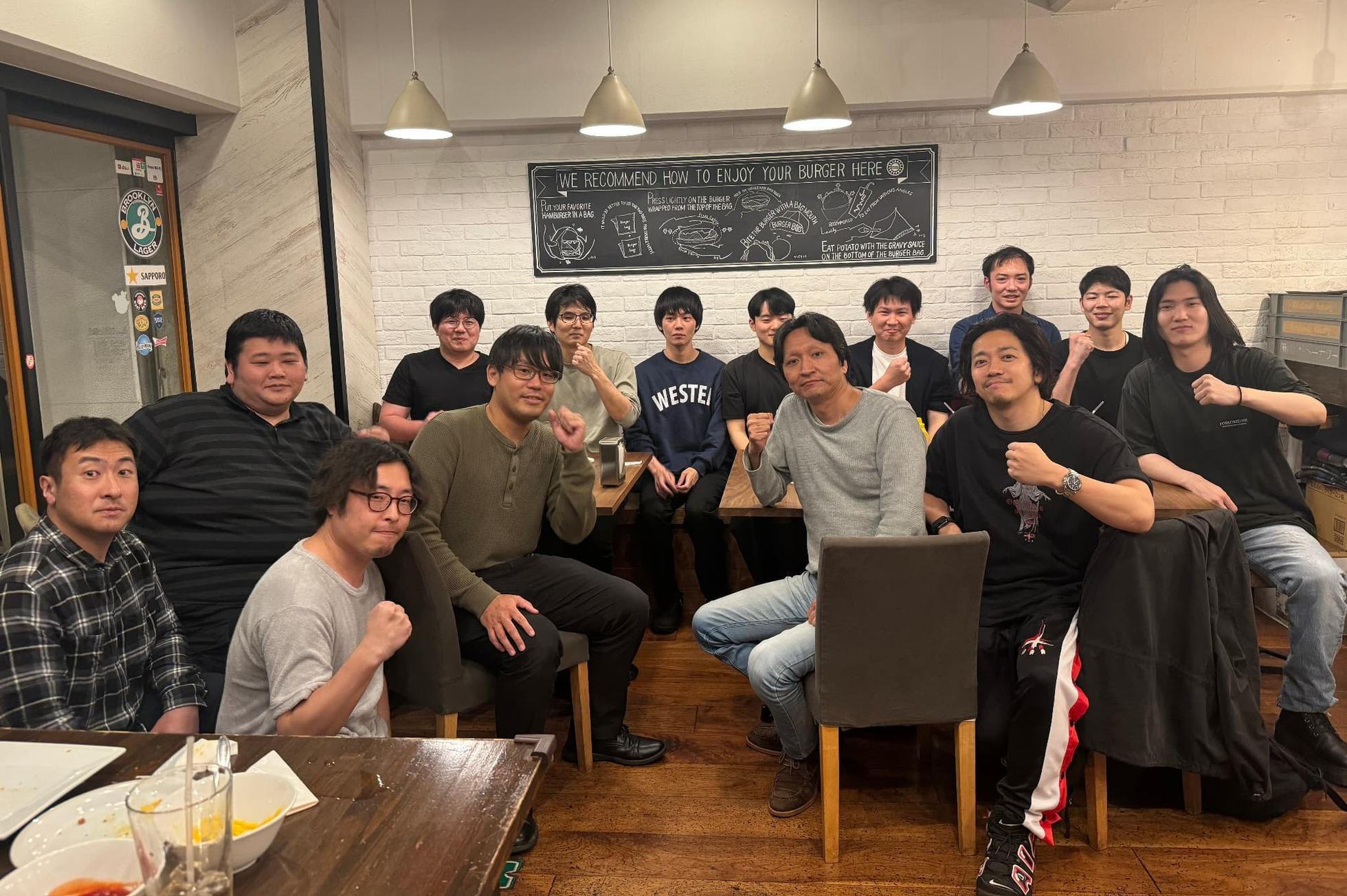 月一恒例のチームビルディングでの一場面です! 入社したばかりの人も、CTOも一緒に飲んでます!